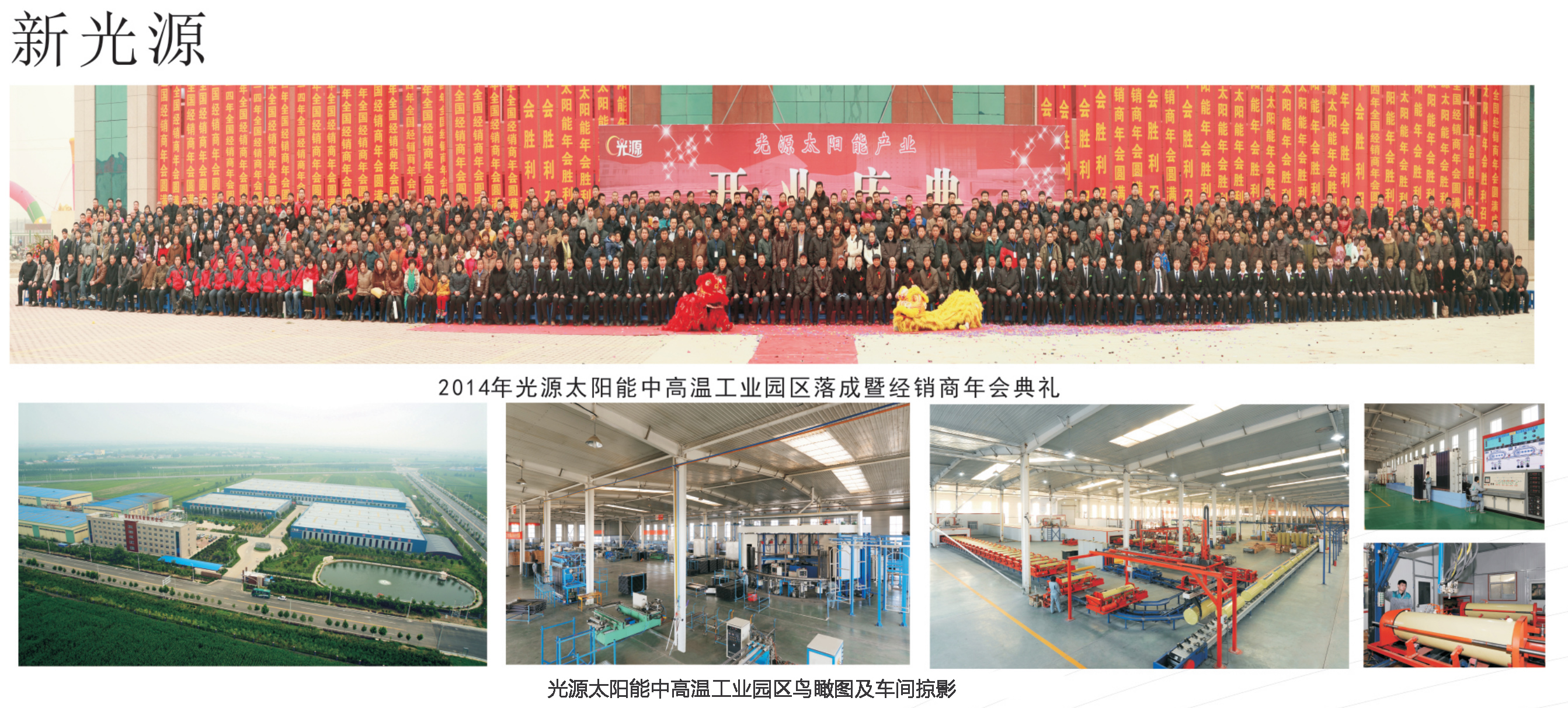 2013年12月光源公司搬遷到新廠區(qū),如今的光源公司,以黨的路線方針和政策為指導(dǎo),以科技發(fā)展與創(chuàng)新為契機(jī),以太陽能開發(fā)與利用為訴求,不僅夯實(shí)了太陽能熱水系統(tǒng)等傳統(tǒng)產(chǎn)品的基石,更在新能源產(chǎn)品的開發(fā)中屢戰(zhàn)佳績(jī)。