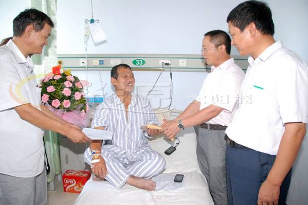 倡議書(shū)隨即引起了全體同事的高度關(guān)注,公司領(lǐng)導(dǎo)帶頭,廣大員工踴躍參與,紛紛主動(dòng)捐款,全體員工用點(diǎn)滴仁愛(ài)之心,向達(dá)師傅傳遞了一份生命的熱度,譜寫(xiě)了光源人互助互愛(ài)的贊歌。8月15日上午公司領(lǐng)導(dǎo)買(mǎi)來(lái)花籃、水果和募集到的近2萬(wàn)元善款到醫(yī)院看望病中的達(dá)師傅,并鼓勵(lì)他用積極的心態(tài)戰(zhàn)勝病魔,早日康復(fù)!