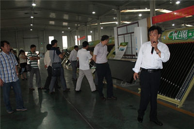 (光源太陽(yáng)能公司副總經(jīng)理向考察團(tuán)介紹太陽(yáng)能真空管)