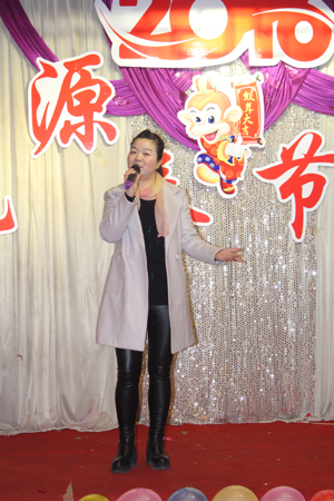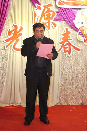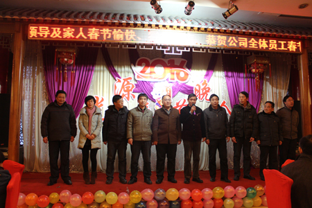 晚會開始前,董事長李成彬首先致辭。在致辭中,李成彬向全體員工恭賀新春,對2015年工作進行了回顧,對2016年工作進行了展望和描繪。接著,公司領(lǐng)導(dǎo)李成彬、劉迎波、邵東坤、李友民一起上臺向大家拜年。公司各部門經(jīng)理一起上臺給大家拜年。恭祝大家新年快樂,猴年大吉,闔家歡樂,萬事如意。