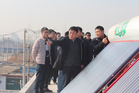 隨后,省領導深入到煤改電項目——太陽能采暖系統(tǒng)生產線。領導認真聽取了董事長對產品的介紹。焦世清主任聽后非常滿意,他對我公司新產品研發(fā)及新環(huán)保節(jié)能產品給予了充分肯定和高度贊賞。