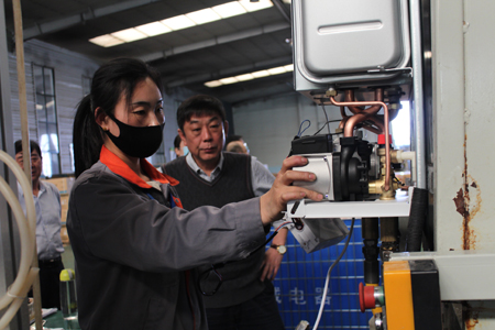 接著,焦世清主任來到公司壁掛爐生產車間,實地考察了國家支持技改項目---煤改氣壁掛爐生產線。焦主任囑托公司,要繼續(xù)做好產品,保證科學技術在世界的領先地位。