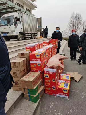 突如其來的新冠肺炎疫情襲擊了邢臺,建設(shè)隔離點(diǎn)成了一項(xiàng)重要任務(wù),建設(shè)工人24小時晝夜不停施工。光源太陽能董事長李成彬得到這一信息,立即派光源黨支部書記李友民、副總經(jīng)理李楊,攜帶價值1.5萬元的方便面、火腿腸、榨菜、生鮮豬肉,到醫(yī)專和醫(yī)養(yǎng)中心隔離點(diǎn)建設(shè)一線,慰問一線建設(shè)工人。